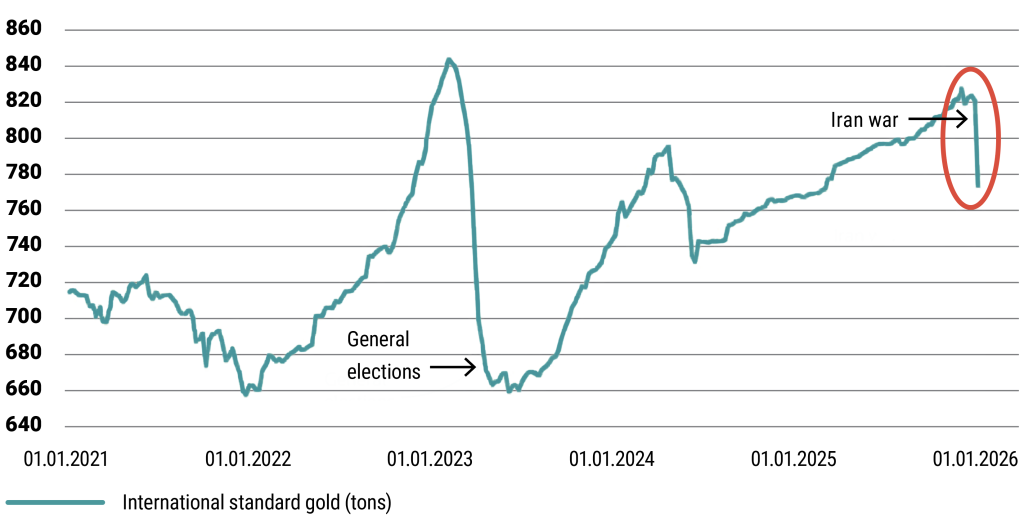 Now, however, a reversal appears to be underway because of the Iran war: central bank flows are weakening or partially reversing. It remains uncertain whether this shift will be short- or medium-term.