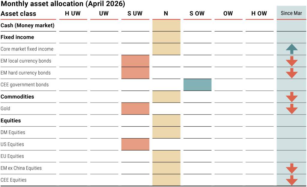 In line with the latest economic and capital market trends, we have made adjustments to our asset allocation. We have established a more conservative asset allocation for the coming period, as risky assets have already declined but do not yet fully reflect the risks ahead. Therefore, we have increased the cash allocation and reduced the weight of riskier emerging markets within the major asset classes.