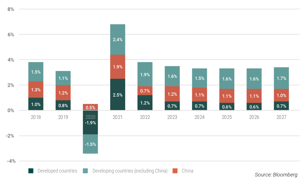 The geopolitical and economic weight of developing countries continues to rise, supported by long-term trends such as demographics, age structure, urbanisation, institutional reform, and the gradual liberalisation of capital-market regulation. On a purchasing-power-parity basis, emerging economies already account for more than half of global GDP, and their growth rates consistently outpace those of developed markets.