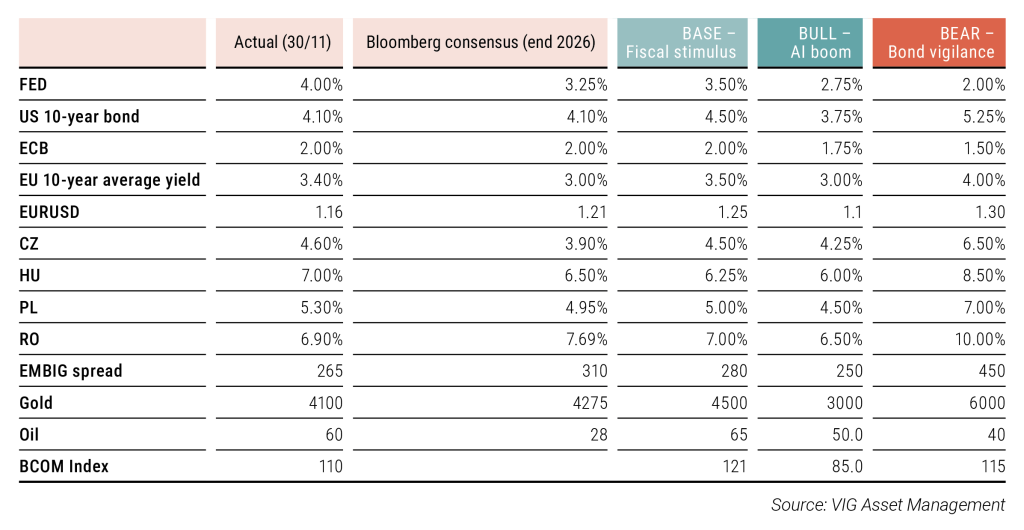 In the base scenario we assume the world economy in 2026 will be shaped by forces that were unleashed in 2025 and the macroeconomic backdrop remains broadly supportive for risk assets.