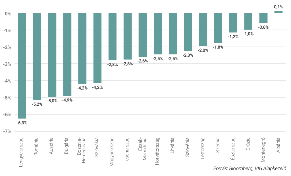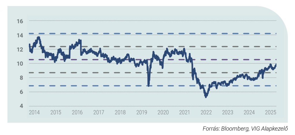 Bár a közép-kelet-európai részvénypiacok már nem annyira olcsók, saját múltbeli átlagukhoz képest – a háború okozta leértékelődés hatása nagyrészt eltűnt – továbbra is markáns diszkonton forognak a fejlett és más feltörekvő piacokhoz képest. A jövő évre várható EPS-növekedés ugyan jelenleg a legalacsonyabb a régióban, az elemzők 2025-re folyamatosan felfelé módosították a profitvárakozásokat a cseh, lengyel, magyar, osztrák és román vállalatok esetében. Mivel a régiós GDP-növekedés továbbra is a válság előtti szintek alatt marad, a háború lezárulása valószínűleg jelentősen javítaná a gazdasági környezetet, és ezen keresztül a vállalati eredményeket is. Mindez arra utal, hogy a közép-kelet-európai részvénypiacok továbbra is számottevő felértékelődési potenciált kínálnak a befektetők számára.